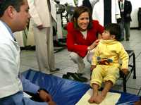 Margarita Zavala, durante su visita de ayer al Centro de Rehabilitación, Capacitación e Investigación Gaby Brimmer