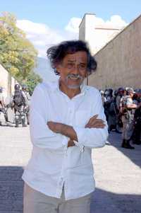 El pintor juchiteco luego de un foro convocado por el Comité 25 de Noviembre, en defensa de los detenidos en Oaxaca, el año pasado. Atrás, elementos de la Policía Federal Preventiva DOTO Alicia Huerta /Notimex