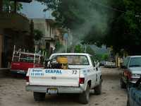 Actualmente, vehículos de la Ssa y del ayuntamiento, entre ellos de la Policía Municipal, han sido habilitadas para fumigar día y noche la ciudad, lo cual parece insuficiente, porque a "diario limpiamos una colonia y son más de 200", refiere uno de los brigadistas.