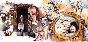 Flores: El tiempo no pasa en vano, allá donde pasa. Covarrubias: ¿Qué sucede? ¿Dónde estoy? Flores: Estás muerto, Covarrubias. Diéguez: Y ahora estamos completos. Covarrubias: ¡Flores! ¡Diéguez! ¿Qué hacen aquí? Flores: Te esperábamos, muchacho. Diéguez: Con impaciencia. Covarrubias: Estoy soñando. Seguramente estoy soñando. Diéguez: Qué más quisieras, Covarrubias. Esta hora es tu hora más real, tu hora de rendir cuentas. Covarrubias: ¿Yo qué cuentas tengo que rendir? Me juzgaron, me absolvieron, me certificaron inocente Flores: Y hasta tú te lo creíste. Pero aquí no te valen tus certificados; esta es otra jurisdicción. Diéguez: Y cuentas pendientes no faltan. A mí, por ejemplo, me propinaste un golpe de Estado so capa de prevenirlo. Flores: Cometiste genocidio y guerra sucia contra el pueblo de Huaxilán. Diéguez: Practicaste la traición múltiple, alevosa y premeditada. Covarrubias: Yo lo que hago lo hago bien. Para qué quedarse en medias tintas, como ustedes dos, haciéndose de cuenta que traicionan patrióticamente. ¡Guajes, peor que guajes, huaxilanos! "Guerra sucia": ¡como si hubiera guerra limpia! Lo que importa en la guerra es ganarla, y todo se vale. Hay que estar con los fuertes, hay que quebrar a los débiles. Cobrar la parte del león, o siquiera la del chacal. Flores: Pero gobernar es otra cosa. Covarrubias: ¿Tú crees? No te enteraste, ¿verdad? Estabas ya vuelto planta. Flores: Me enteré, sí. No podía no enterarme. Me tocaba. Covarrubias: Te tocaba morirte de envidia, sí. La generación de ustedes no llegó jamás a entender la inteligencia imperial, por la sencilla razón de que sus mentes primitivas, decrépitas y retrógradas nunca supieron identificarse con ella. La alta política de nuestro tiempo les pasó por encima y apenas su sombra alcanzaron a ver. Si yo les contara todos los planes que fui tramando, los tratos que hice y deshice, los bueyes que quité de en medio, los poderes que gané, los negocios que cerré , podríamos estarnos aquí una eternidad, y a lo mejor hasta aprenden algo, aunque de nada les sirva. ¿Por dónde empezaré? Diéguez: ¡A callar! Covarrubias: ¿A quién crees que estás callando? Diéguez: A ti mismo, Alvarito Covarrubias, pendejo de mierda, imberbe lameculos. ¿Es que me quieres desconocer? Covarrubias: No, señor presidente. Diéguez asiente, satisfecho. Se mira el pie. Diéguez: Se me desató la agujeta. El otro se arrodilla a atársela. Flores contempla fascinado la escena, que se prolonga hasta que Covarrubias de pronto reacciona. Covarrubias: ¡No, no! Estoy soñando, esto es mi sueño, voy a despertar. Oscuro. Pausa prolongada. Luz a la escena del principio: encuentro de Flores y Diéguez. Flores: ¿Cuándo volveremos los tres a reunirnos en el trueno, en el rayo o en la lluvia? Diéguez: Cuando acabe de llegar aquél, porque ahora nomás somos dos. Flores: Es verdad. Como que se está tardando. Diéguez: Mala yerba nunca muere. Flores: Pero ya debería estar aquí Diéguez: Ya está más para acá que para allá, pero todavía se aferra. Flores: Cuánta desvergüenza. Diéguez: Ha de querer cosechar lo que sembró. Flores: Lo que sembramos. Permanecen inmóviles, mirando al público. Oscuro lento. |