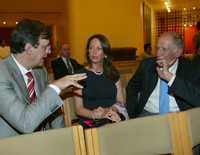 El jefe de Gobierno, Marcelo Ebrard, Laura Diez Barroso Azcárraga de Laviada y Ricardo Legorreta, en la presentación, anoche, del libro Patios del Centro Histórico, en el Club de Industriales, en Polanco