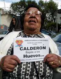 Durante la protesta que integrantes de la Asamblea de Barrios protagonizaron ayer contra la escalada alcista, frente a la Secretaría de Economía
