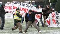 Zafarrancho entre policías y manifestantes en los jardines del palacio Bellevue, a la llegada de Felipe Calderón Hinojosa