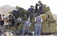 Integrantes de la Marina y de la AFI se preparan para incinerar en una base naval de Topolobampo, Sinaloa, unas cuatro toneladas de mariguana recién incautadas
