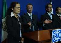 El secretario general adjunto del PAN, Carlos Abascal (centro), presentó a los candidatos a dirigir el blanquiazul en el DF: Mariana Gómez del Campo y Carlos Gelista