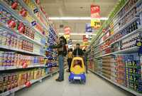 Clientes de la nueva sucursal de la cadena de supermercados Tesco en Pekín