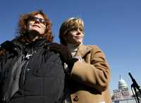 Susan Sarandon y Jane Fonda, durante la marcha antiguerra alrededor del Congreso