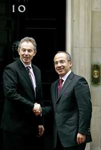 En su afán de mostrarse cercano al poderoso líder político, amigo de George W. Bush, elogió la opción de la tercera vía que promueve la acción conjunta del Estado y del mercado, y abrazó su agenda por el desarrollo sustentable y el cambio climático. Con sorpresa y buen humor, Blair recibió una pregunta de la prensa mexicana en torno de los gobiernos estatistas y populistas a los que ha hecho mención Calderón.