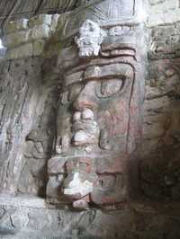 Efigie maya en piedra, emplazada en Kohunlich, Quintana Roo, zona arqueológica que forma parte de la Riviera Maya. Los lugares donde se desarrolló esa civilización son muy visitados por turistas nacionales y extranjeros