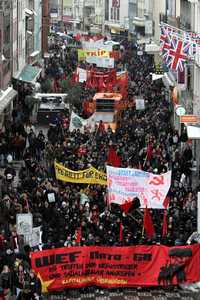 Una de las manifestaciones de repudio al foro económico de Davos que se desarrollan desde el 27 de enero en Suiza