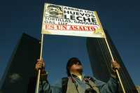 Manifestante en la marcha por la defensa de la soberanía alimentaria y el empleo y en contra de la inflación, del Angel de la Independencia al Zócalo, efectuada ayer