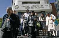 Irene Villavicencio (izquierda) madre de Flavio Sosa, dirigente de la APPO, y otros familiares, presentaron una queja ante la CNDH por la detención de sus hijos