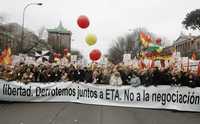 Madrid, 3 de febrero. Miles de personas, incluidos los principales dirigentes del Partido Popular (PP), se manifestaron hoy en Madrid convocados por el Foro de Ermua para pedir que no se negocie con ETA. "Zapatero dimisión" o "España se merece otro presidente" fueron las frases más coreadas en la marcha.