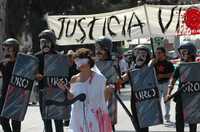 Oaxaca, Oax., 3 de febrero. Miles de integrantes y simpatizantes de la Asamblea Popular de los Pueblos de Oaxaca (APPO) participaron hoy en la novena megamarcha para demandar la destitución del gobernador Ulises Ruiz Ortiz y la libertad de los "presos políticos y de conciencia".