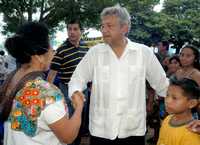 Celestun, Yuc., 3 de febrero. Andrés Manuel López Obrador se reunió la mañana de este sábado con la ex senadora priísta Dulce María Sauri Riancho en la casa de ésta. Ambos desayunaron y platicaron por espacio de una hora. Al preguntarle sobre el tema del diálogo, el político tabasqueño señaló que en parte se habló de que ella apoye las causas ciudadanas.