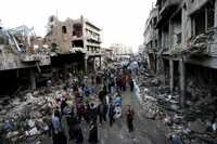 Iraquíes transitan cerca del mercado de Sadriya, en el centro de Bagdad, devastado luego de la explosión de un camión bomba el sábado que dejó 130 muertos y más de 300 heridos, en lo que fue considerado el segundo peor atentado en Irak desde la invasión estadunidense, en marzo de 2003