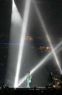 Con las luces del estadio apagadas, la gente interactuó con el rockero con las lucecitas de lámparas personales que fueron colocadas en cada uno de los asientos del estadio previo al inicio del encuentro.