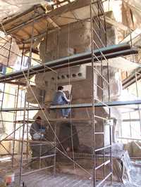 ''Como si fueran los huesos, lo fuimos armando y después lo protegimos y vestimos de una tela de metal desplegado. Le dimos la forma como si estuviera en cemento, y sobre esta tela revestimos totalmente con el concreto. Hasta la falda del Tláloc está completamente maciza. Hacia arriba, en su interior, tiene unas paredes de 40 centímetros (de espesor)'', señaló.