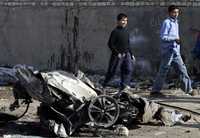 Restos de un vehículo utilizado como carro bomba para llevar a cabo el atentado en el distrito Nuevo Bagdad, ayer en el este de la capital iraquí