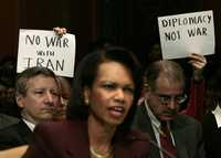 Protesta en el Senado estadunidense durante la comparecencia de la secretaria de Estado Condoleezza Rice, ayer en Washington