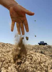 Un granjero muestra los efectos de la desertificación en la tierra de un campo desolado en New South Wales. Expertos de la ONU advirtieron el viernes sobre los efectos de la actividad humana sobre el cambio climático