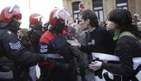 Mientras, en San Sebastián, la Ertzaintza, policía autonómica vasca, disolvió una manifestación de centenares de jóvenes próximos a la izquierda abertzale y detuvo a una joven, una vez que la Audiencia Nacional española dictaminó como ilegal dicha convocatoria.