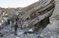Iraquíes observan un edificio de la policía cerca de Tikrit, colapsada luego de que un atacante suicida detonó explosivos escondidos en un camión, causó la muerte de 17 policías y prisioneros e hirió a 25 personas