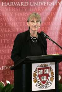 Drew Gilpin Faust habla con la prensa tras ser presentada como la presidenta número 28 de la Universidad de Harvard, la más antigua de Estados Unidos