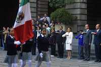 Durante la ceremonia en la que abanderó a las escoltas de la primaria Francisco I. Madero y de la Telesecundaria 485 de Guanajuato, estuvo acompañada por el gobernador del estado, Juan Manuel Oliva Ramírez.