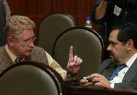 Los coordinadores de PRD y PAN, Javier González Garza y Héctor Larios, respectivamente, durante la sesión de ayer en la Cámara de Diputados