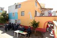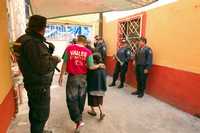 Elementos policiacos apostados en los pasillos de las viviendas de los predios expropiados en la colonia Morelos