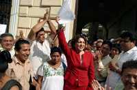 Luego llegó la ex panista Ana Rosa Payán Cervera, quien partió desde un conocido parque de Mérida acompañada de sus simpatizantes, la mayoría ex miembros del blanquiazul, así como militantes de Convergencia y del Partido del Trabajo, que ahora son parte de la coalición Todos Somos Yucatán.