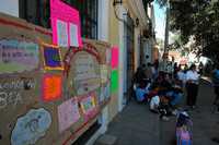 Padres de familia de las cuatro escuelas ocupadas de Santa María El Tule, durante el plantón permanente frente a las oficinas de la Secretaría General de Gobierno