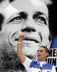 En foto de archivo, el hijo de Roberto D'Aubuisson, Eduardo, una de las víctimas. Al fondo se aprecia la imagen de su padre, fundador de los escuadrones de la muerte