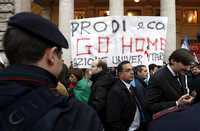 Más de cien opositores se congregaron fuera de las oficinas de Prodi para pedirle que dimitiera tras la votación en el Senado.