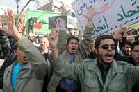 Estudiantes iraníes se manifiestan contra Bush y Estados Unidos ante la embajada británica en Teherán