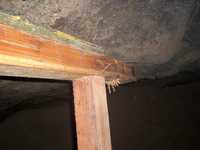 Debido a que el proceso de erosión avanza rápidamente y para evitar en lo posible los derrumbes, sostienen los techos, provisionalmente, con madera