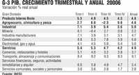 Visto trimestralmente, el crecimiento del PIB en 2006 fue de más a menos. En el primer trimestre el aumento fue de 5.5%, en el segundo de 4.9, en el tercero de 4.5 y en el cuarto de 4.3 (Gráfico 3).