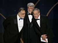 Los realizadores Francis Ford Coppola, George Lucas y Steven Spielberg anuncian el premio a mejor director, obtenido por Martin Scorsese