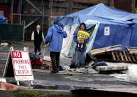 Personas sin casa mantienen un campamento en el centro de Olympia, Washington, el estado con más pobladores en pobreza extrema en Estados Unidos