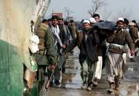 Parientes retiran el cuerpo de un afgano muerto durante el ataque explosivo en Bagram