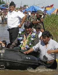 El presidente Evo Morales visita áreas inundadas de las afueras de Trinidad