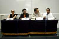 Cristina Renaud, Angeles Guzmán, César Moheno y Efraín Mendoza durante la presentación de la obra El nuevo escenario de las campañas presidenciales