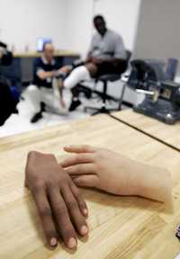 El sargento Tawan Williamson (al fondo), quien perdió una pierna en una explosión en Irak, visitó el Centro para el Intrépido, un lugar de rehabilitación de alta tecnología que costó 50 millones de dólares, diseñado para atender las necesidades del creciente número de soldados que regresan de la guerra amputados o con quemaduras severas. Las instalaciones están en el Centro Médico Brooke del ejército, en San Antonio, Texas
