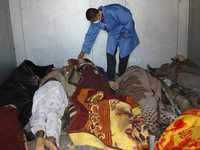 Un médico forense examina en la morgue del hospital de Mahmoudiya los cuerpos de seis iraquíes asesinados en el norte de Latifiya
