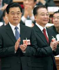 El presidente chino, Hu Jintao, y el primer ministro Wen Jiabao, durante la apertura de la Asamblea Nacional Popular, ayer en el Gran Salón del Pueblo en Pekín