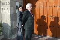 El embajador de Colombia en México, Luis Camilo Osorio (de anteojos), frente a la puerta de la casa de García Márquez, en el DF, donde una nube de reporteros aguardó infructuosamente para ver al Nobel colombiano