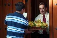 Entrega de un arreglo floral para el festejado