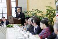 El presidente Felipe Calderón Hinojosa durante la comida que ofreció ayer en Los Pinos a integrantes del grupo parlamentario del PRI, encuentro al que también acudió la dirigente nacional del tricolor, Beatriz Paredes RangelFOTO Notimex