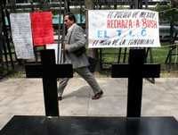Frente a la embajada de Estados Unidos miembros de El Barzón protestaron por la próxima visita del presidente George W. Bush